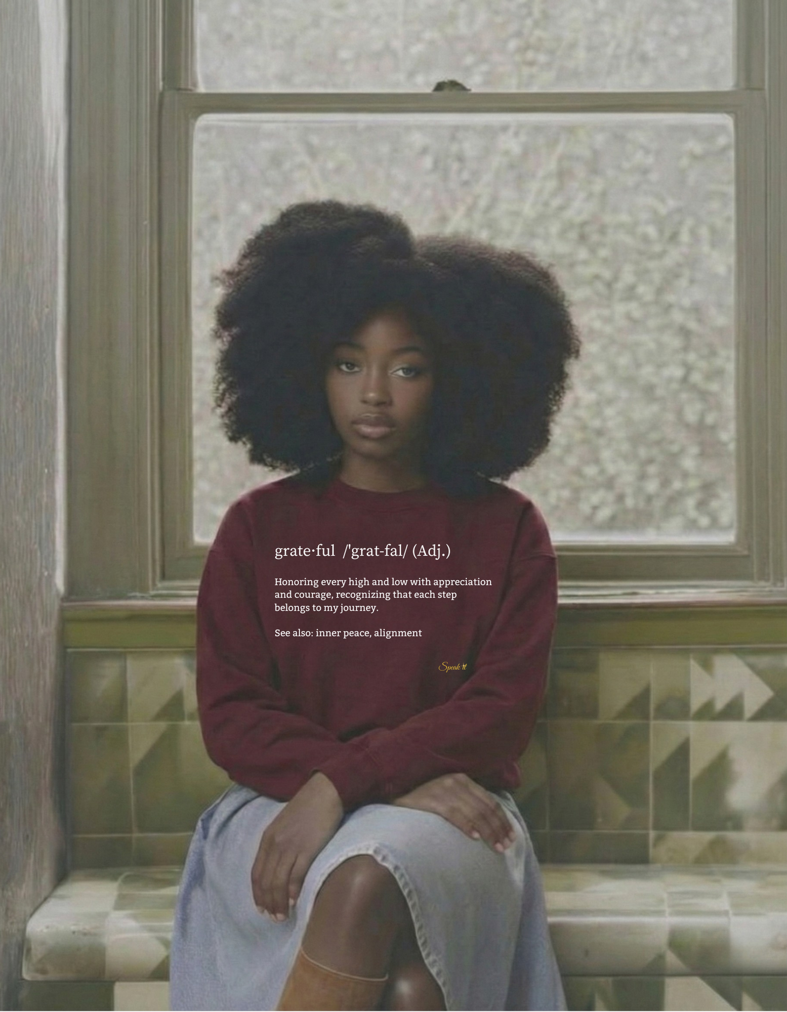 Grate·ful /'grat-fal/ (Adj.): Honoring every high and low with appreciation and courage, recognizing that each step belongs to my journey. See also: inner peace, alignment
